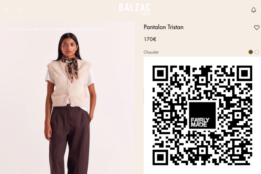 Fairly Made has enabled Balzac Paris to integrate traceability directly into its customer experience, both online and in-store. Each QR code or widget allows consumers to view the origin of materials, production steps, and associated impacts. This educational and differentiating tool strengthens both trust and loyalty.